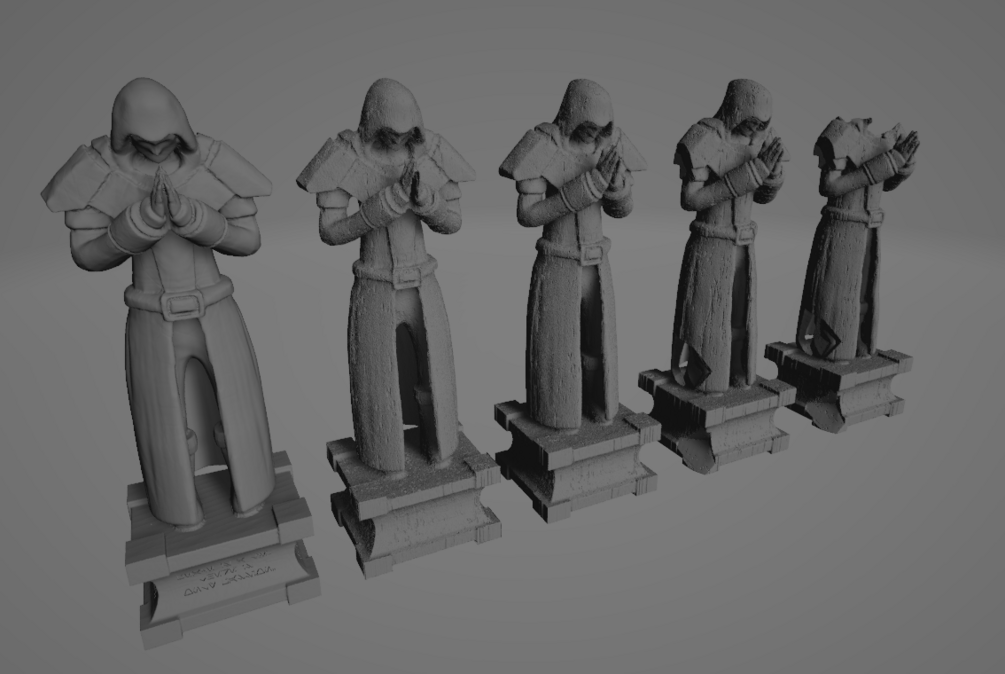 As pictured, there are 5 different weathered statues, the broken debris one also has it so you can print the debris as well (head etc) so you could also use that.