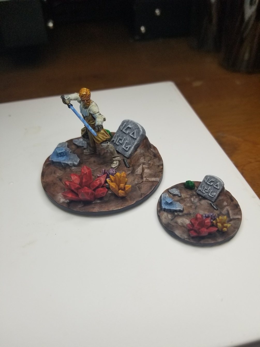 1: Cave setting-  Very Detailed base with Light saber Crystal clusters, Broken stone table with holocron, abanonded lightsaber and an ancient stone tablet.